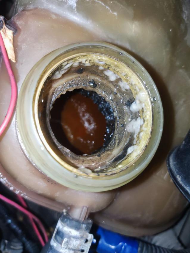 Всем привет, история будет большая но постараюсь в крации доложить. Машина Opel Zafira A 2.0 дизель двигатель X20DTL год 2000. Ехал по трассе 130 лопнул патрубок с головы на печку благо на флянце, обрезал патрубок залил антифириз начал воздух выгонять а в расширительном бачке пузыри маленькие. Понимаю что это может означать езду к механику ставим в бачок тестер Co2 который цвет меняет , по началу было эффекта 0 пока 3.5 тыс оборотов не дали и жижа цвет поменяла, вот они газы. Оставил машину и уехал дальше в другой город , по итогу сняли 7 соток новая прокладка. Забрал машину покатался и решил заглянуть в бачок ож а там те же пузыри , долго ругался в итоге решил взять под наблюдения . Через время в бачке появилась черная жижа по консистенция как солидол густая. фото прилагаю . Сижу думаю что это может быть. Заметил что патрубки разъело из-за солярки которая на них капала , жду новые патрубки планирую начать с теплообменика . Ваши варианты что может быть ?