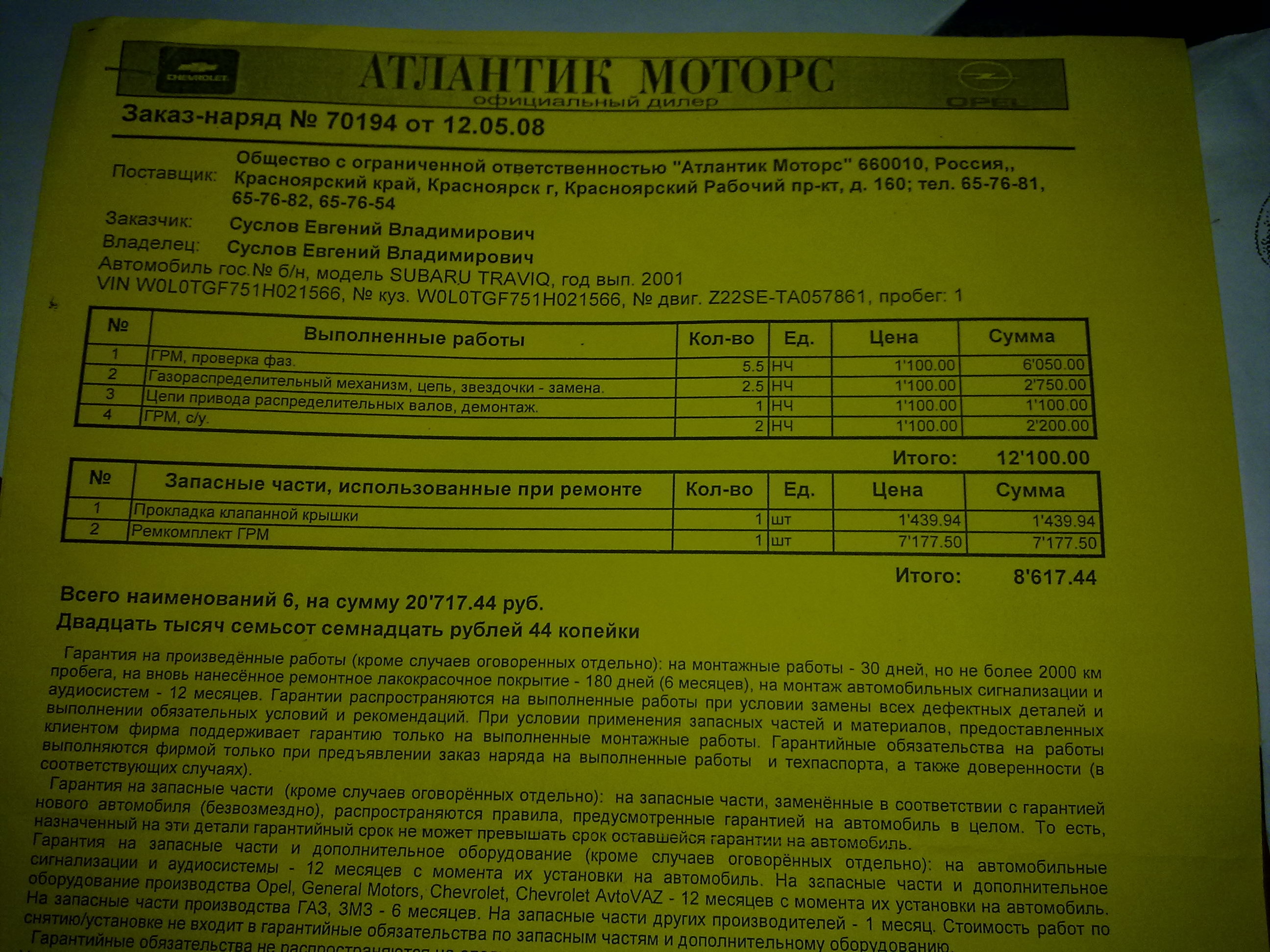 Кстати вот наряд - заказ на замену ремкомплекта грм. Кто что скажет?