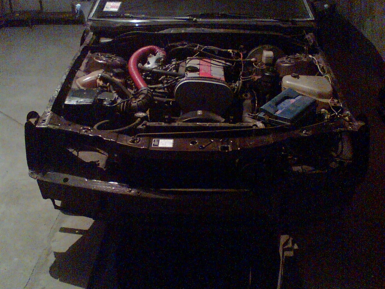А пока из переделок было самое основное гофрой временно трубу выхлопную к колектору присоеденил, бачёк расшерителя с кали, радиатор масляный перед водяным втулили, да и так по мелочи с проводкой. Все сопли буду убирать во время установки турбины, там ещё с интеркулером повозится надо.Ещё не решил куда его всунуть.