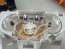 В красных кружках сверлил и вставлял туда диоды,затемм приклеивал их термопистолетом,все диоды были без линз,точное расположение не помню но примерно в этих местах которые отметил, синий диод по краям оградил чтоб не мешал красным!Верхние диоды нужно всверливать ниже чтоб не мешали корпусу который одевается сверху.А по поводу питания даже и не помню где плюс минус но припаивал именно в тех местах что и на фото! ( http://i2.pixs.ru/st...948_3319158.jpg )