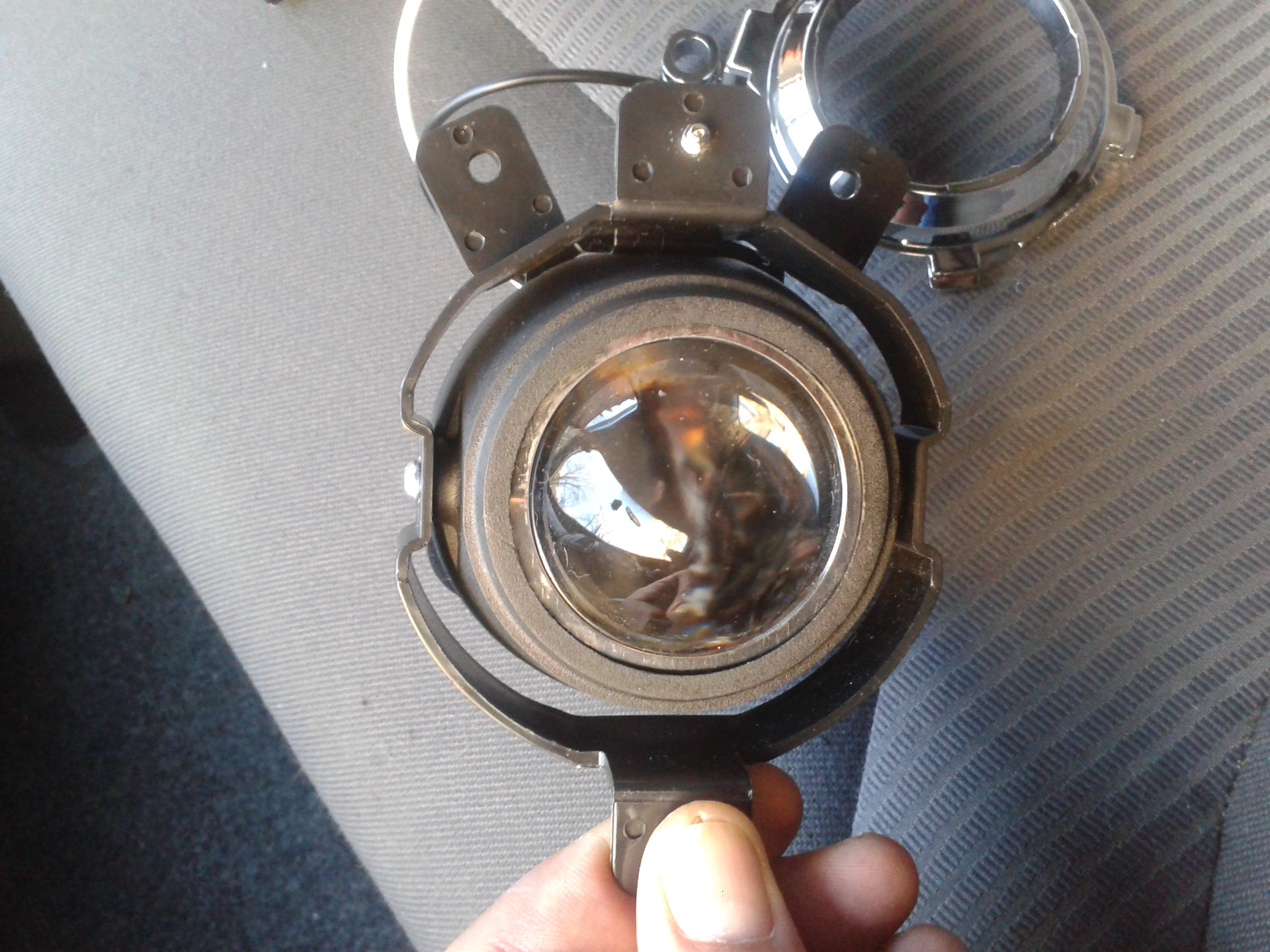 автомобиль у меня Виваро 2.0 конца 2007 года в "новой морде". Приобрел я ПТФ фирмы ДЕПО, взялся их устанавливать, и обнаружил как и остальное большинство форумчан что в бампер их просто так не поставишь. Порылся в интернете и нашел что нужны дополнительные стаканы, которые стоят по 250 грн. за штуку. Мне таких денег стало жалко и решил "мудрить самостоятельно". Для начала распотрошил пол морды машине, снял решетку со знаком, потом бампер. Вырезал в бампере места под заглушки, присадил туда ПТФ. Потом нашел в гараже в качестве материала для крепления ПТФ старый дорожный знак-указатель какого-то населённого пункта. Сделан из алюминия, очень лёгкий, не крошится и гнется я вам должен сказать с трудом. Дальше путем вырезания из картона (на месте по туманке и местам для фиксации) муляжа сделал такие себе наброски. Приложил на пластину и повырезал заготовки. Должен сказать что поигрался я с ними пол дня. При помощи товарища,болгарки,ножниц по металу, плоскогубцев и прочего другого гаражного инвентаря я сделал вот такое: