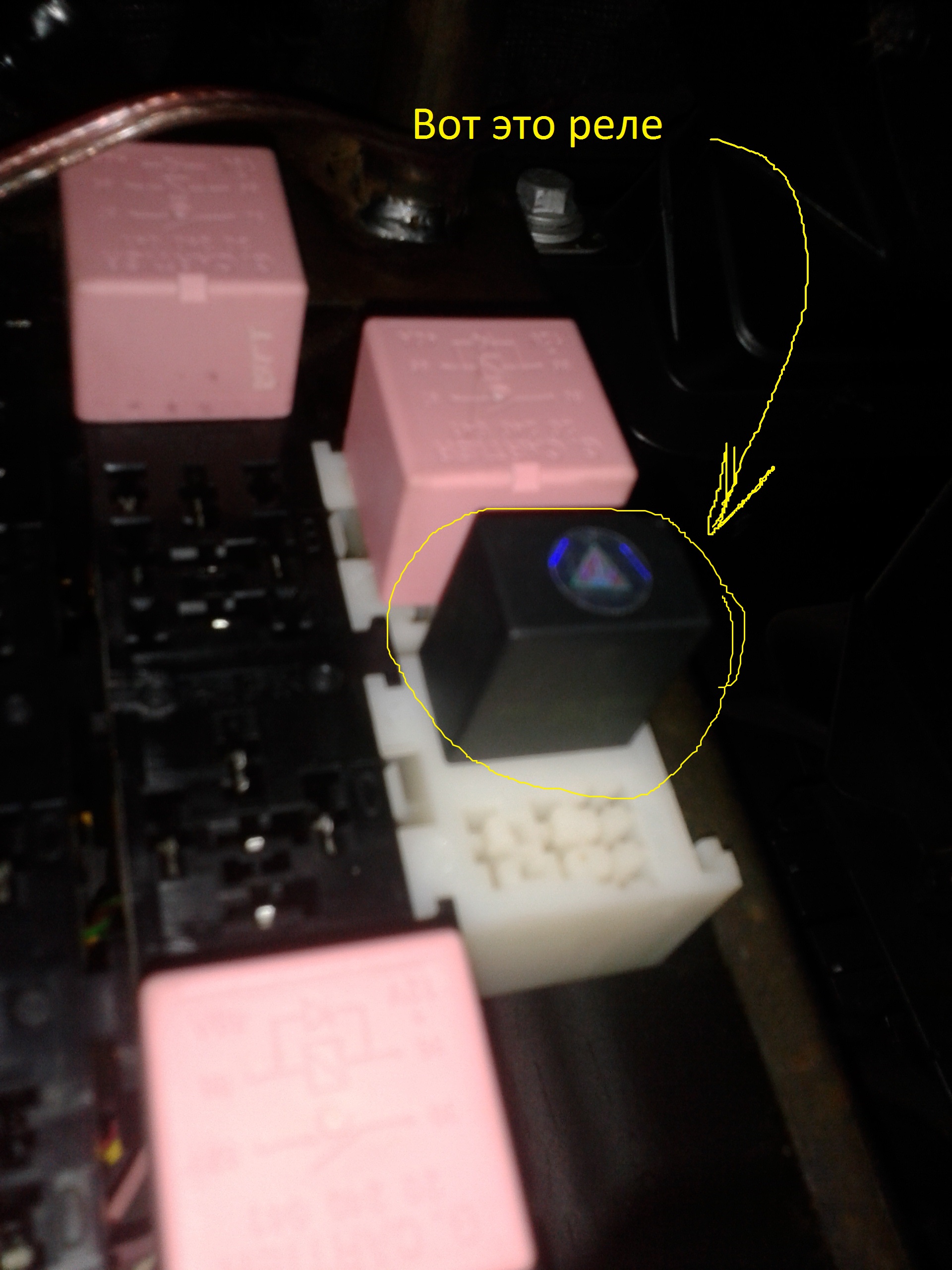 Серый провод который висит, он стоял в 3-м пине, а тот что розовенький и на фото стоит в третьем пине, он изначально стоял в первом. Все как и описывалось в фотоотчёте до меня. Меняем их местами. Серый можно оставить просто так. Он отвечает за задние ПТФ. Они у меня рабочие, но я ними никогда почти не пользуюсь, потому решил пока отключить. Но в принципе если есть желание дабы потом не снимать кожух снова можно проключить серый провод на розовый через выключатель, который как мне кажеться лучше всего втиснуть возле коректора фар. В комплекте с ПТФ шла релюха 30 амперная но она не подходила на блоке комфорта в нужное место. Потому опять таки как и делали до меня поехал купил от Део реле, только не на 30, а на 20 А. Поставил, вошло как и надо.