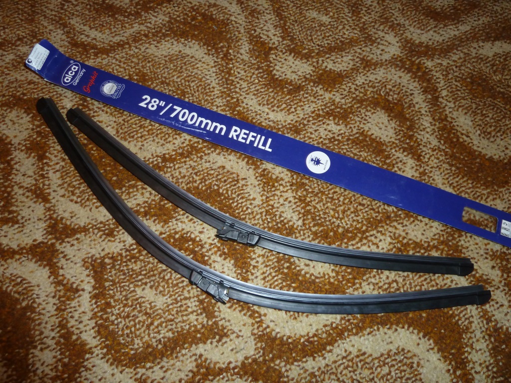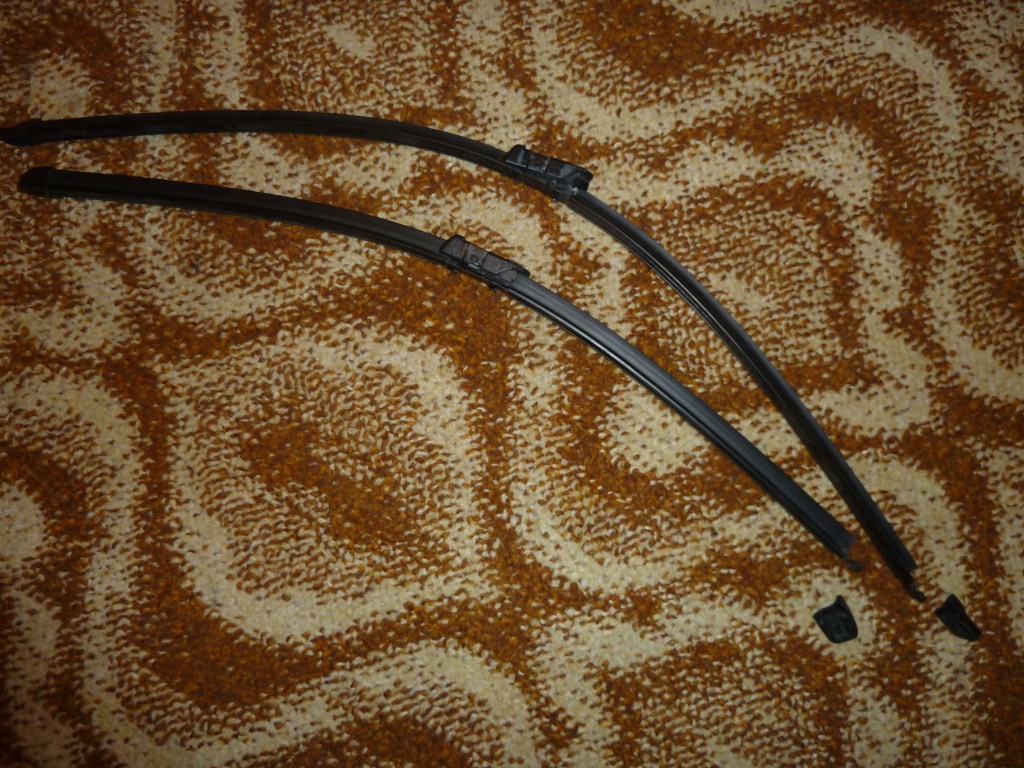 У нас щётки разной длинны. Резинка из автомагазина (или Ашана) длинной 62 см не подошла. Со стороны водителя (если не ошибаюсь) нужно больше. Плюс к этому родные бескаркасные щётки разобрать не смог, а ломать не хотел, так как ещё нормально работают.
